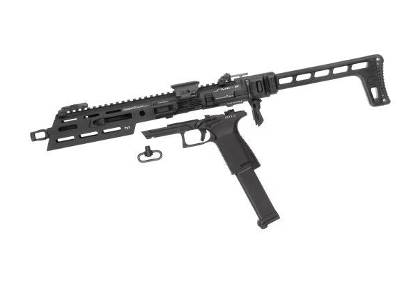 Die von G&G entworfene und hergestellte SMC 9 ist eine Nachbildung einer kompakten Maschinenpistole, die unter Verwendung des Rahmens und der Abzugseinheit der Gasrücklaufpistole GTP9 hergestellt wurde.
